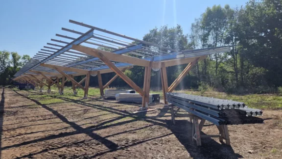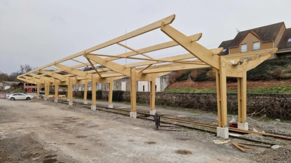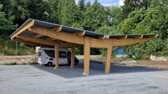 L’ombrière solaire s’installe sur une grande surface de stationnement pour abriter à l’ombre un grand nombre de véhicules et offrir une solution pratique pour la recharge électrique. Cette structure en ossature bois est donc adaptée aux entreprises ou collectivités disposant d’un grand parking, aux aires de repos, aux aires de covoiturage, etc.